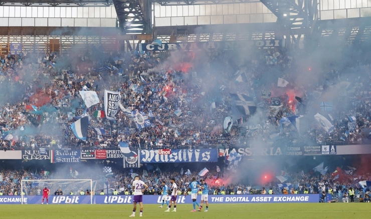 Nakon što su u četvrtak u Udinama osigurali naslov prvaka, nogometaši Napolija su na rasprodanom stadionu Diego Armando Maradona pred 55.000 gledatelja u susretu 34. kola Serie A pobijedili Fiorentinu