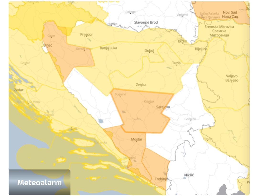 Federalni hidrometeorološki zavod izdao je za nedjelju, 14.svibnja narančasto upozorenje. U obavještenju se navodi da se očekuju padavine između 30 i 60 litara po metru kvadratnom, lokalno oko i iznad