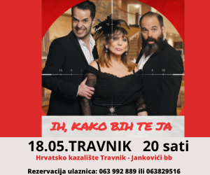 U Travniku, u Hrvatskom kazalištu u Jankobićima u četvrtak 18.05.2023. godine u 20:00 sati će se izvesti predstava „Ih, kako bih te ja“ u režiji Irfana Avdića. Adaptaciju i dramatizaciju