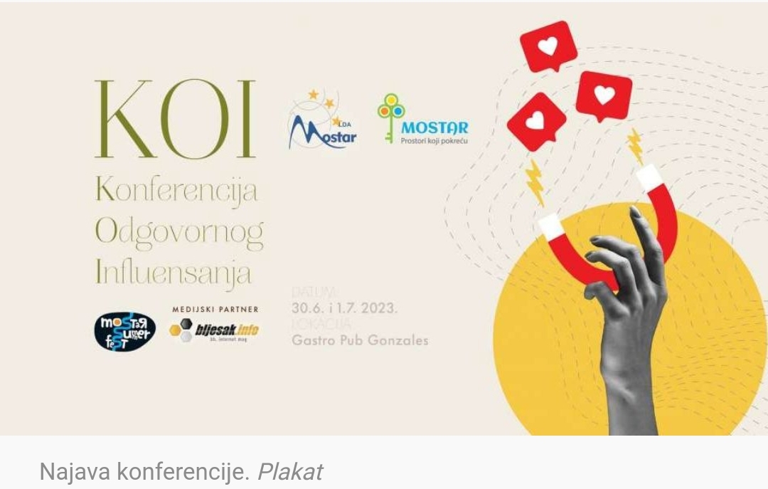 Prva regionalna Konferencija odgovornog influensanja (KOI) održat će se u razdoblju od 30. lipnja do 1. srpnja u Gastro Pub Gonzales u Mostaru. Tim povod konferencija za medije održat će