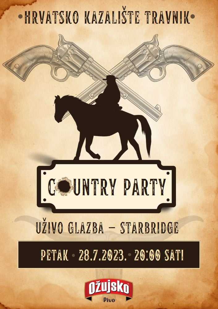 Hrvatsko amatersko kazalište Travnik iz Jankovića u petak 28.07.organizira tradicionalni “Country party”. Posjetitelji ove tradicionalne manifestacije koja traje više od 20.godina uživat će u kaubojskoj noći uz Starbridge band i