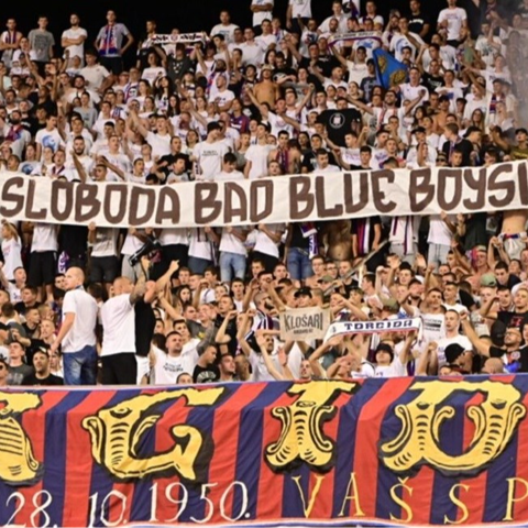 TORCIDA je na prvenstvenoj utakmici Hajduka i Slavena na rasprodanom Poljudu podigla transparent s natpisom “Podrška Bad Blue Boysima” i počela pjevati “Zovi, samo zovi, svi će sokolovi, za te