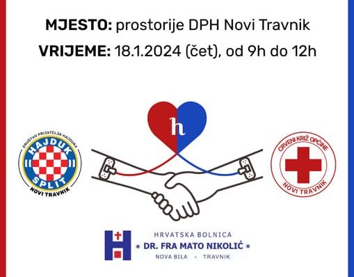 DPH Novi Travnik u suradnji s Crvenim križem općine Novi Travnik i Odjelom transfuziologije Hrvatske bolnice “Dr. Fra. Mato Nikolić” organizira akciju dobrovoljnog darivanja krvi. Darivanje krvi bit će organizirano