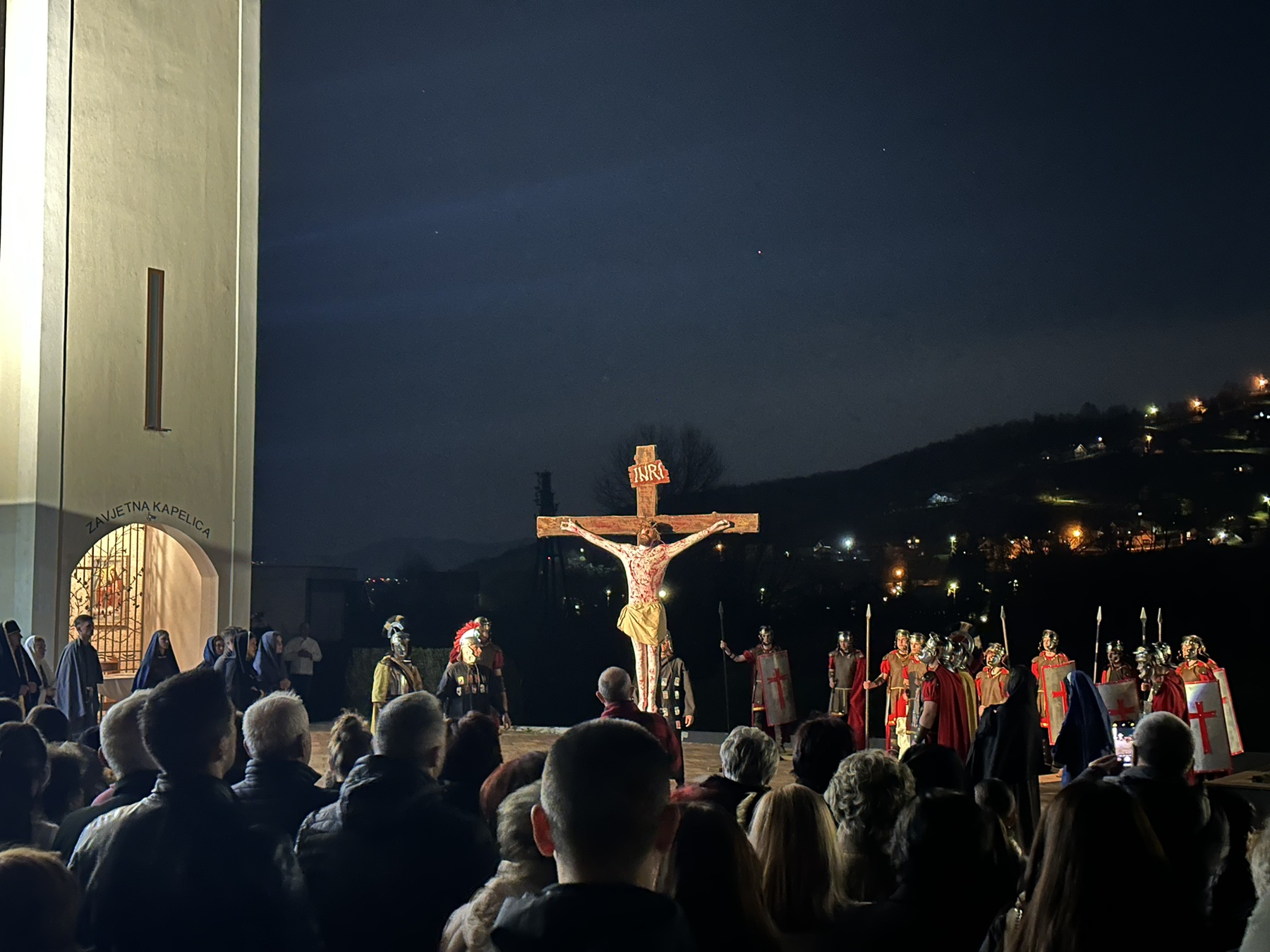 Mladi župe Presvetog Trojstva u Novom Travniku i glumci HAK Travnik priredili su večeras “živi” put križa na trgu Drinskih mučenica, ispred župne crkve. Umjesto slika postaja stajali su čuvari