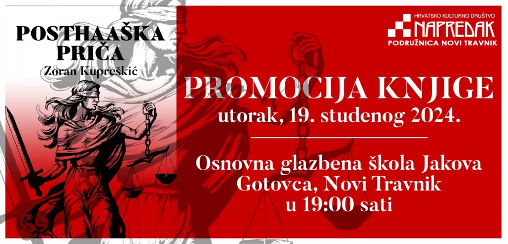 U utorak, 19. studenog 2024. održat će se predstavljanje knjige Posthaška priča, autora Zorana Kupreškića iz Viteza. Knjiga je objavljena u izdanju viteške podružnice HKD Napredak, a do sada je