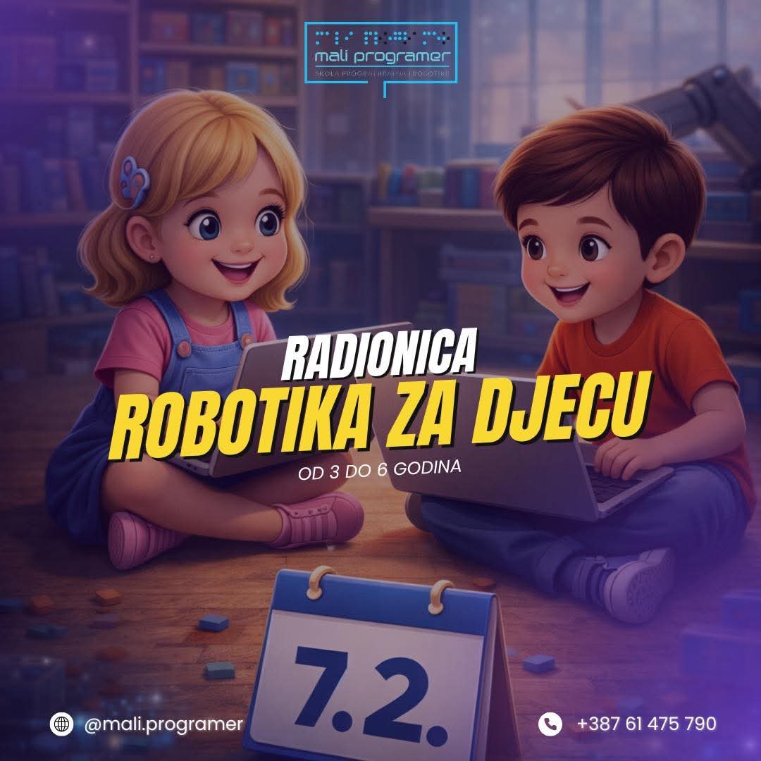 🤖✨ PRVA RADIONICA ROBOTIKE ZA DJECU U TRAVNIKU! ✨🤖 Mali programer po prvi put u Travniku organizuje radionicu robotike namijenjenu djeci uzrasta od 3 do 6 godina 👧🧒 Kroz igru,