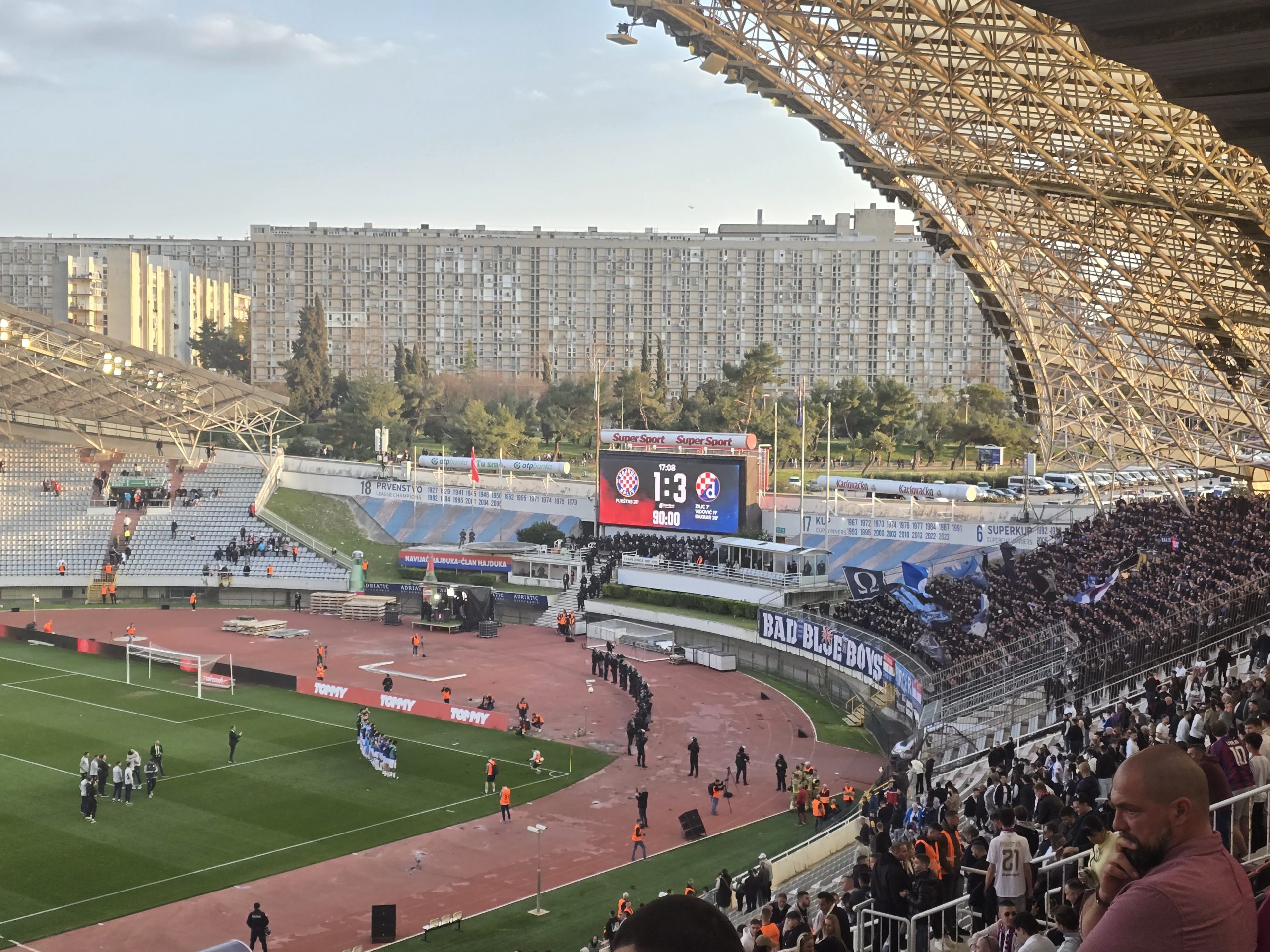 DINAMO je pobijedio Hajduk na Poljudu s 1:3 u derbiju 25. kola SuperSport HNL-a. Miha Zajc, Gabriel Vidović i Monsef Bakrar zabili su za goste, a Rokas Pukštas pogodio je