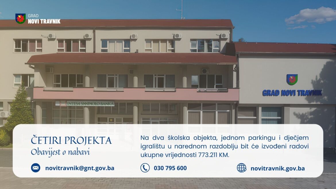 Na dva školska objekta, jednom parkingu i dječjem igralištu u narednom razdoblju bit će izvođeni radovi ukupne vrijednosti 773.211 KM. Konkretnije, planirani su radovi na školskoj sportskoj dvorani OŠ Safvet-beg