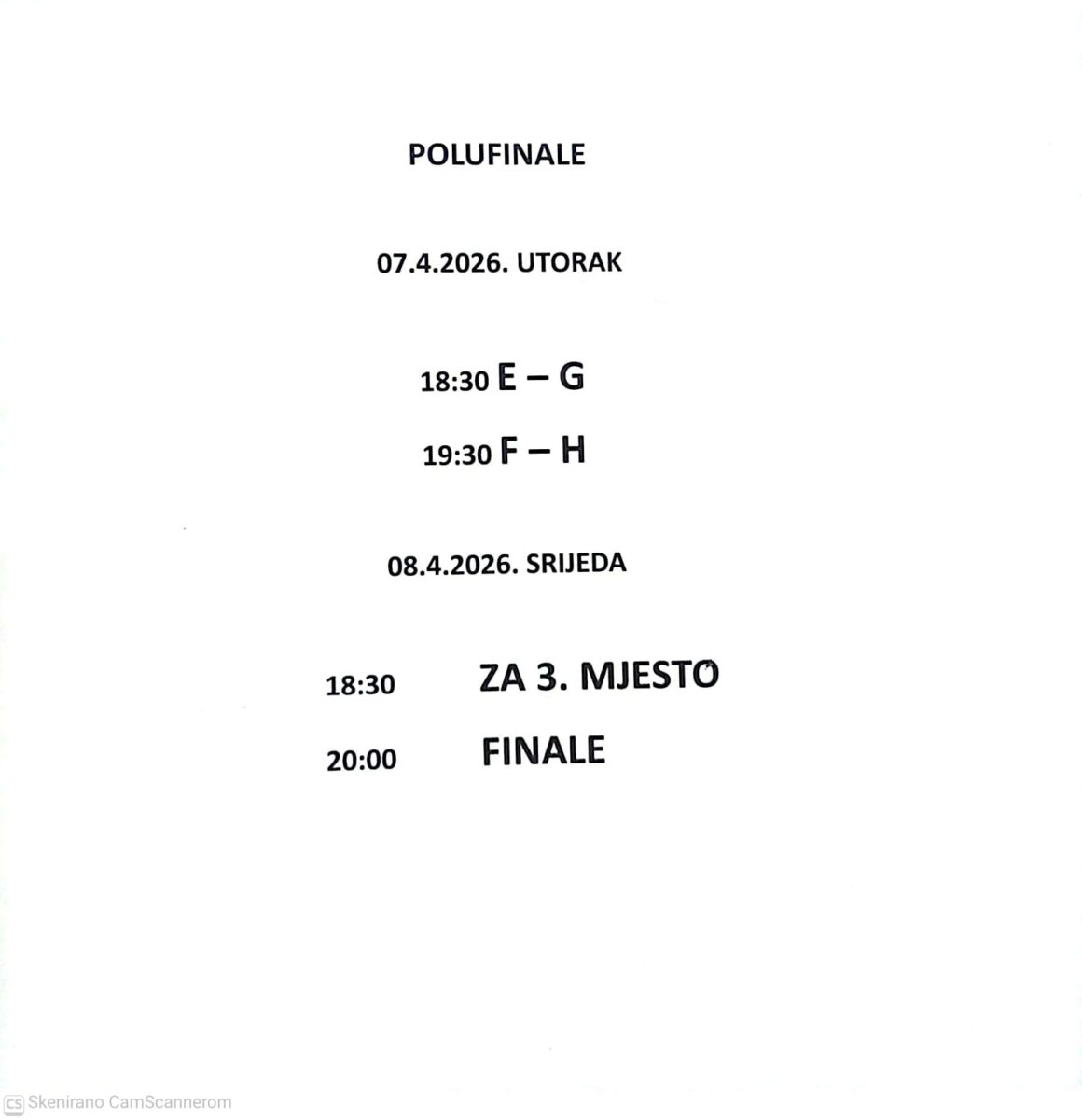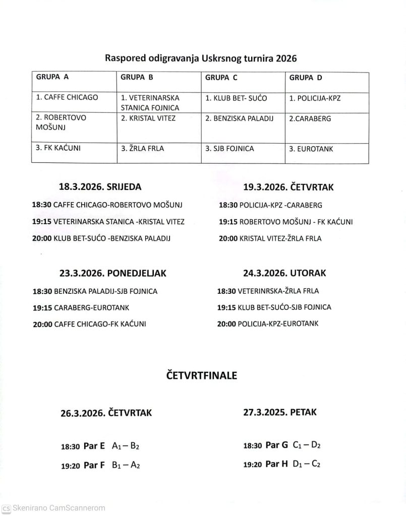 Napomena za sve ekipe: jednom objavljeni termini utakmica su konačni i nisu podložni promjenama, stoga molimo sve sudionike da se pridržavaju utvrđenog rasporeda.