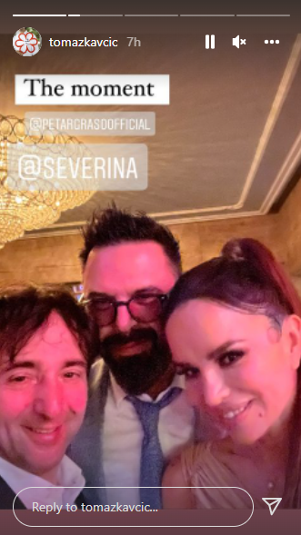 Na pozornici im se u jednom trenutku pridružila i Ana Bekuta, a za uzvanike je zapjevao i mladi Matija Cvek. Severina je tijekom večeri pozirala s prijateljima. Na Instagramu je osvanuo selfie nje, Graše i njegovog kuma Tomaža Kavčiča.