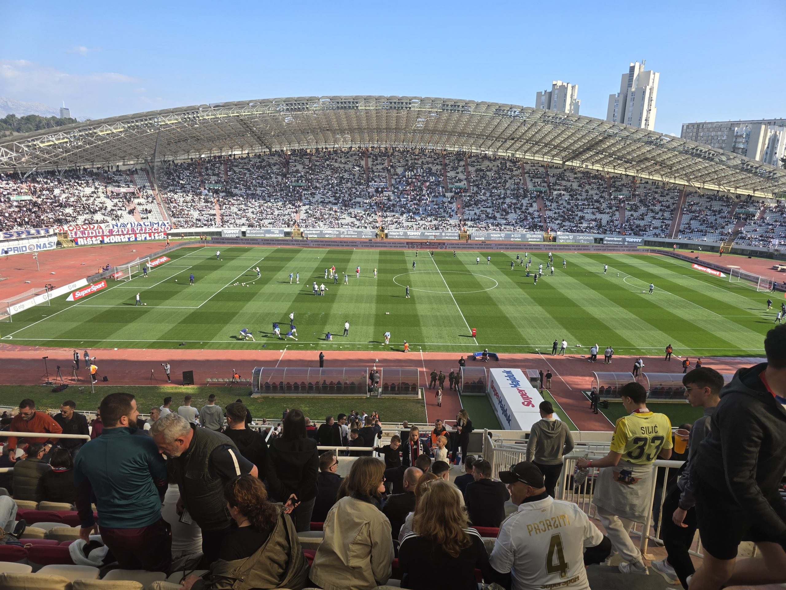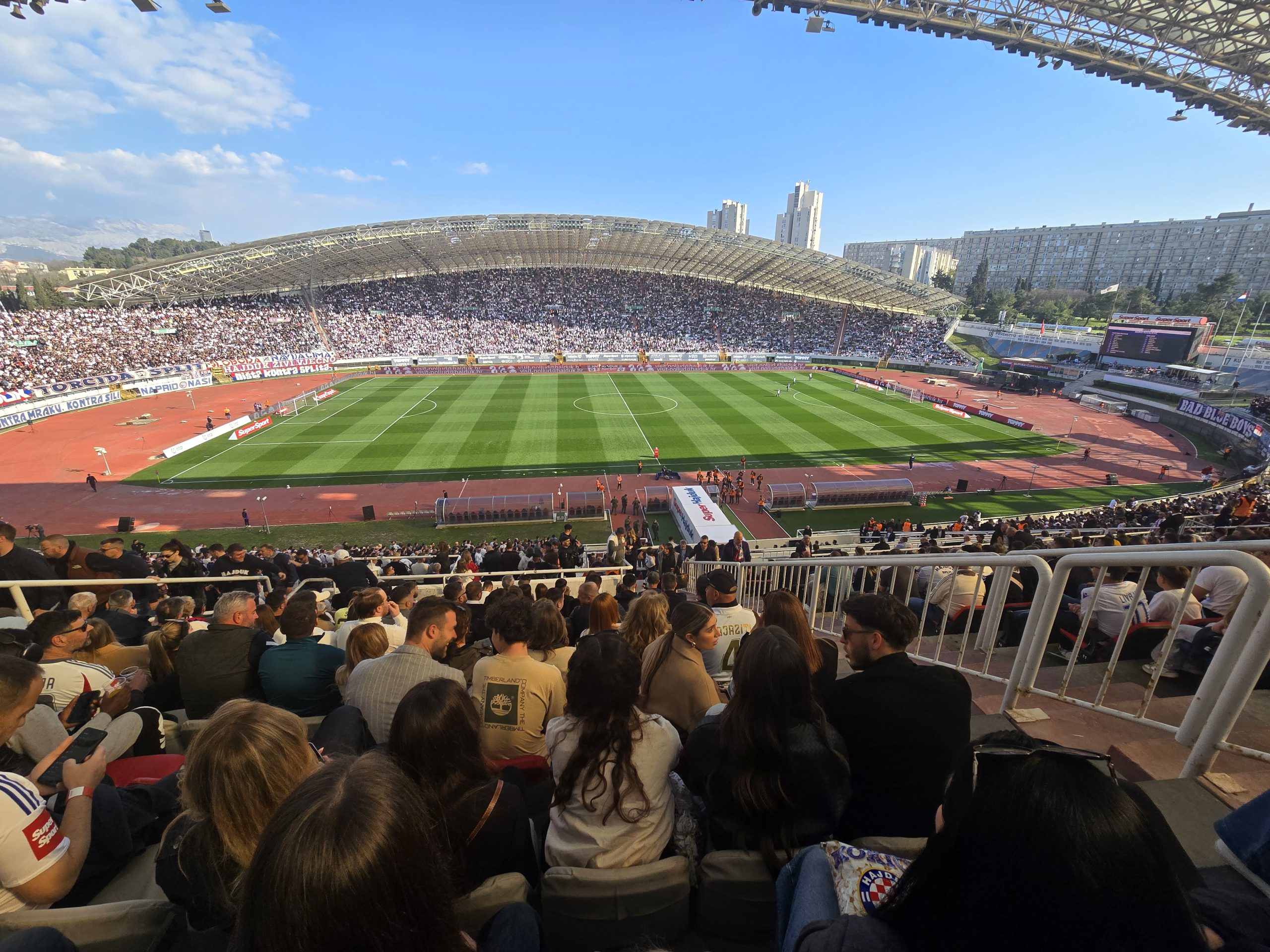 Potom se igra razvodnila, što zbog brojnih zamjena, što zbog velike bakljade navijača Dinama smještenih u jugozapadnom dijelu stadiona u 80. minuti. Zbog dima koji se nadvio nad travnjak prekid je trajao sedam minuta. Razbijen je tako ritam utakmice, Dario Melnjak imao je jedan opasan udarac za Hajduk prije kraja utakmice, no nije glavom pogodio okvir gola.