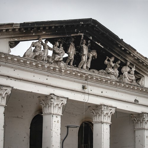 Kazalište je razoreno u zračnom napadu ruske vojske sredinom ožujka. U zgradu se tada sklonilo nekoliko stotina civila, od kojih mnogi nisu preživjeli napade. Zabat kazališta je teško oštećen, ali i dalje stoji. Unutrašnjost zgrade je potpuno uništena.