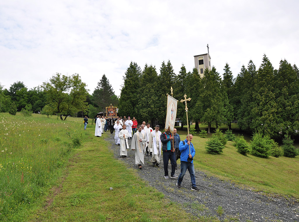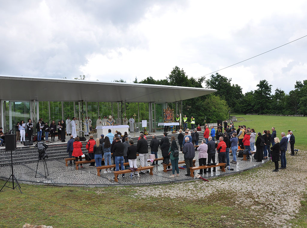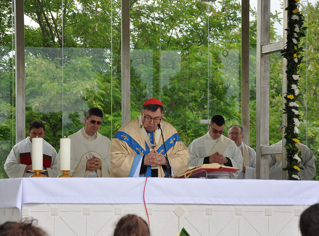 Dolaskom na uzvišenje, na kojem se nalazi nova kapelica i moderni vanjski oltar započelo je euharistijsko slavlje koje je predvodio vrhbosanski nadbiskup metropolita Vinko kard. Puljić.