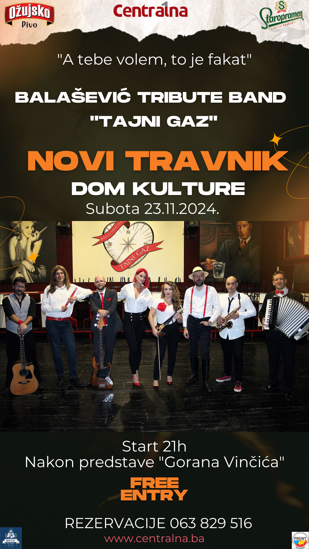 Grupa “Tajni Gaz”, najpoznatiji tribute bend u regiji, donosi nam Balaševićevu magiju u Novi Travnik pod sloganom “A tebe volem, to fakat!”.