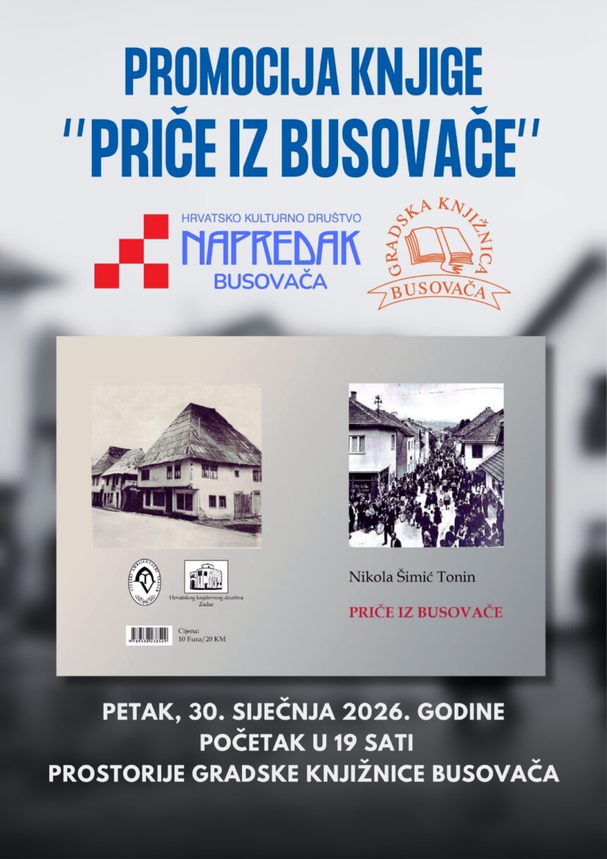 Promocija će biti održana u petak, 30. siječnja 2026. godine, s početkom u 19 sati, u prostorijama Gradske knjižnice Busovača.