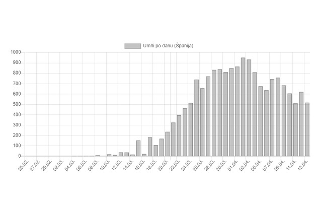 Prema podacima španjolskog ministarstva zdravstva, Španjolska je do sada registrirala ukupno 169.496 osoba zaraženih koronavirusom. Od posljedica koronavirusa u ovoj je državi od početka epidemije preminulo 17.489 ljudi, a oporavilo ih se 64.727.