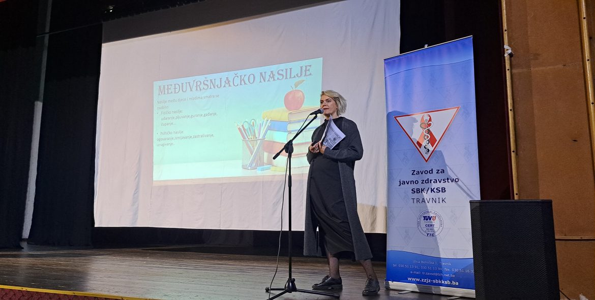 Ako se pozovemo na neka istraživanja, doći ćemo do podataka da je blizu 70% slučajeva vršnjačkog nasilja prođu ispod radara nastavnika. Svi mi trebamo da pristupimo ovom problemu na jedan drukčiji način. Otvorenije, da uspostavimo suradnju, da razgovaramo. Ukoliko bilo koje dijete zaspe sa suzom u oku zbog vršnjačkog nasilja onda nismo ispunili svoju misiju, ni kao stručnjaci ni kao ljudi, Kazao je u kratkom predavanju Direktor zavoda za javno zdravstvo SBK/KSB prof.dr.sc.Sead Karakaš.Djeca su nakon kratkog predavanja odgledala crtani i dokumetarni film koji prikazuje određene vrste nasilja nad vršnjacima, a također i osobne ispovijedi roditelja djece koja su doživjela nasilje, pa i stručnih osoba koje savjetuju kako se ponašati i kome se obratiti ako ste žrtva istog.