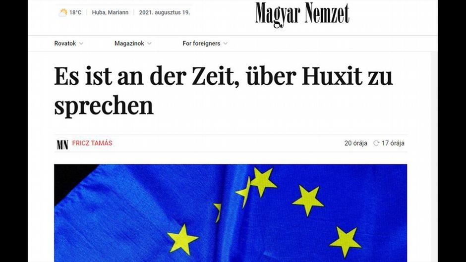 “Vrijeme je za razgovor o Huxitu”, naslovio je Magyar Nemzet njemačku verziju tog priloga. To je odjeknulo poput bombe: o tome su izvijestili skoro svi veći mediji, oporbeni političari su se zgražali, mnogi komentatori su izrazili zabrinutost. Nije čudo: oko toga da Mađarska spada u EU do sada je vladao, unatoč dubokim političkim podjelama u zemlji, nadstranački i društveni konsenzus, jedan od rijetkih koji u toj zemlji još uopće postoje.