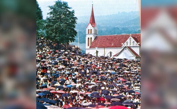 Pitaju: hoće li biti film? Nema ove godine filma, ove spomen-godine otkupljenja nema filma. Ali neće biti ni sna. Ima Liturgija svjetla. U 21,30 sati pale se u rukama hodočasnika svijeće, mnoštvo svijeća oko križa i povorka kreće od crkve prema oltaru na vrhu doline obavljajući pobožnost križnog puta. Zvučnici zvonko prenose poruke križnih postaja do duša koje prožima blaga jeza, jer nikad ovako u noći, ovako blizu križu nisu išle za Kristom i pratile ga na putu njegove muke.