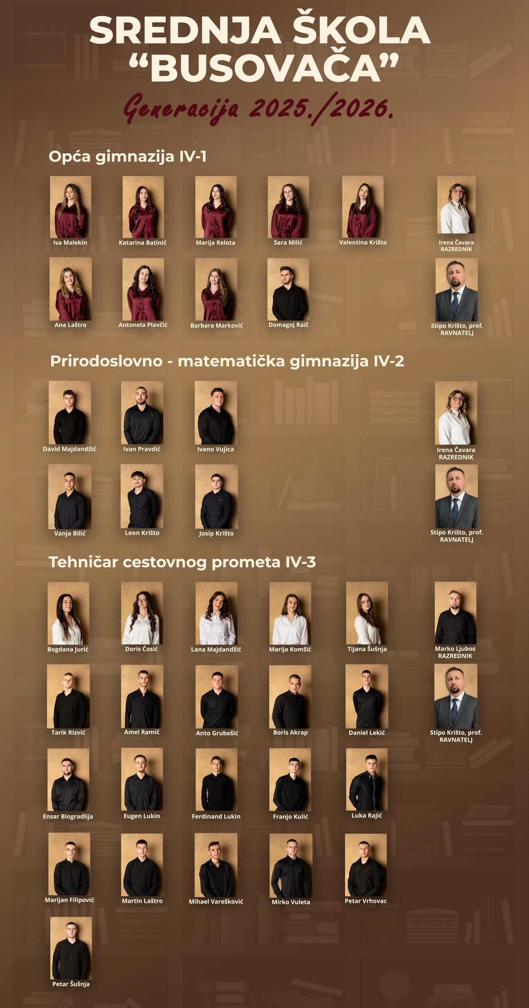 Srednja škola Busovača s ponosom predstavlja generaciju maturanata 2025./2026., čime je započelo odbrojavanje do završetka njihova srednjoškolskog obrazovanja.