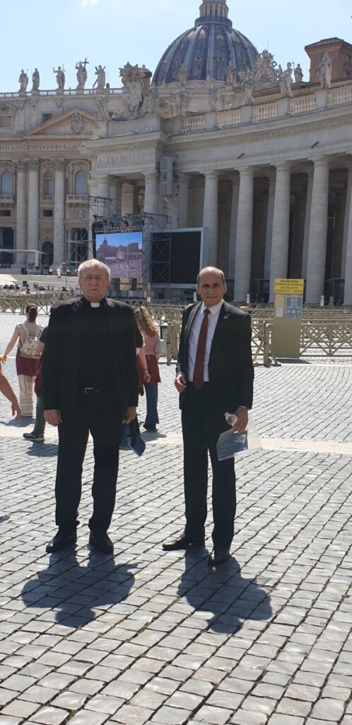 Prof. Franjo Topić u pratnji tajnika Zaklade Ljudsko bratstvo BiH boravio je u Rimu od 10. do 15. lipnja 2023. Prvi susret o Ljudskom bratstvu pod nazivom “Not Alone” (Ne sam) održao se u subotu, 10. lipnja 2023. na Trgu svetoga Petra u Vatikanu.