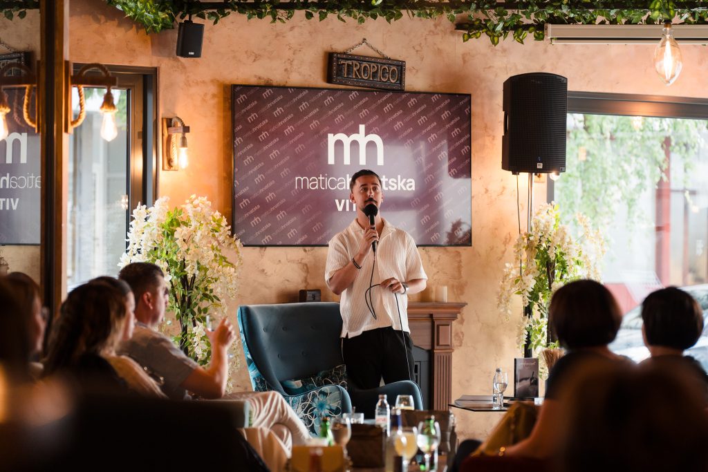 Na početku promocije, u ime organizatora, nazočnima se obratila Bojana Štrbac, naglasivši kako Matica hrvatska Vitez ovim programom nastavlja svoju bogatu sezonu kulturnih događanja, ovoga puta kroz urbani iskorak. „Promociju smo smjestili u jedno od omiljenih okupljališta naših sugrađana, želeći kulturu i književnost dovesti izravno među ljude. Reakcije publike pokazuju da smo u tome uspjeli“, kazala je Štrbac u uvodnom obraćanja.