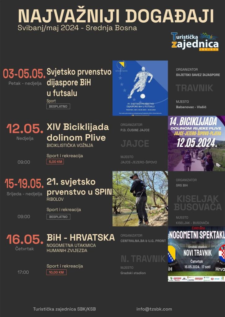 Kada se radi o događajima u srednjoj Bosni, svibanj kao da je rezerviran za sport i rekreaciju. Uglavnom nas očekuje pregršt zanimljivih sportskih i rekreativnih događaja namijenjenih za sve uzraste.