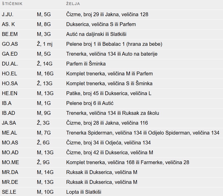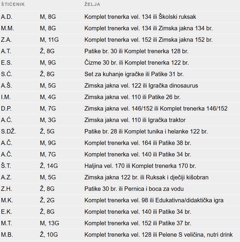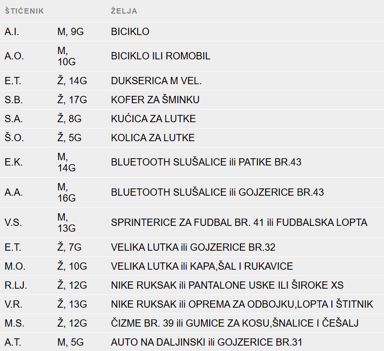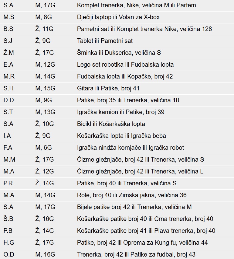 Njihove želje su skromne. Neka djeca žele puzzle, neka trenerke, ruksake, igračke, šminku…