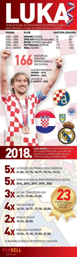 Modrić je osvojio 23 trofeja od kada je u ljeto 2012. odjenuo bijeli dres Real MadridaU nadolazećoj sezoni imat će priliku prestići Karima Benzemu i brazilskog braniča Marcela koji su osvojili po 25 trofeja, najviše u 121 godinu dugoj povijesti Real Madrida.