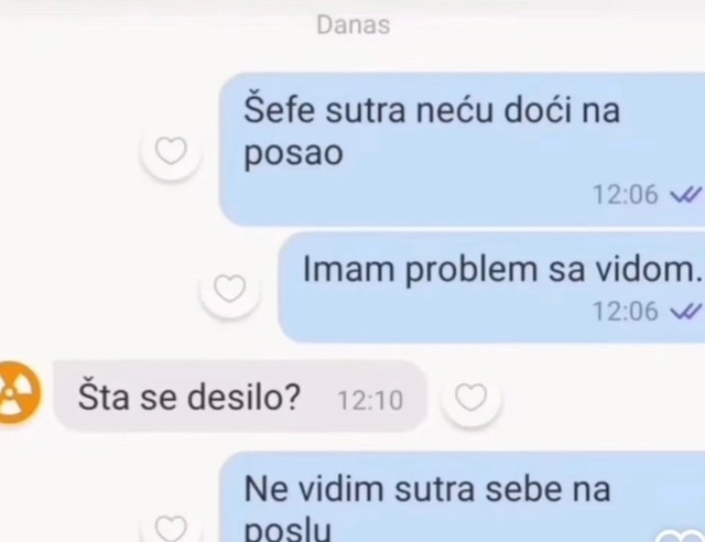 Tip je javio šefu da neće na posao zbog problema s vidom, morate vidjeti daljnje objašnjenje