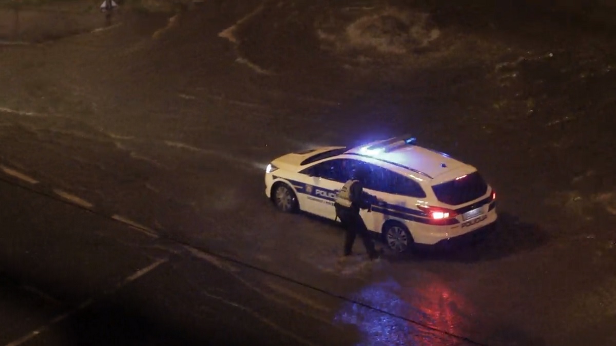 Na raskrižju Branimirove i Strojarske izletjeli su šahtovi i poplavili podvožnjak. Policija je došla za nekoliko minuta.