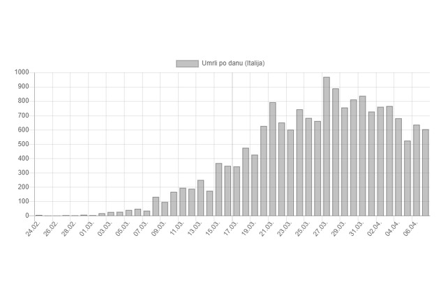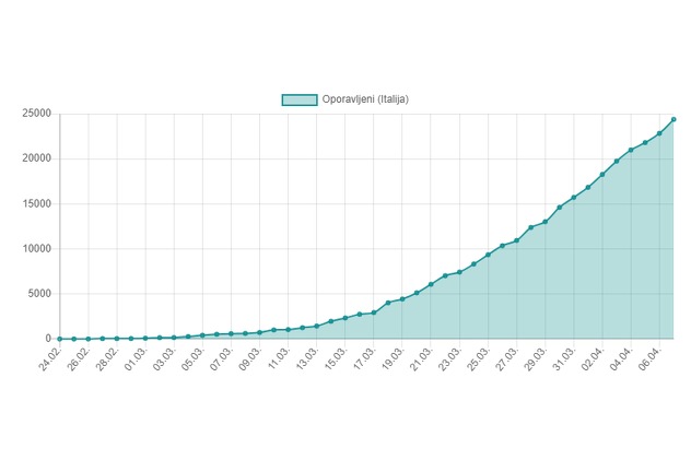 Prema podacima Civilne zaštite Italije, u posljednja 24 sata preminule su 604 osobe, a oporavilo ih se 1.555.