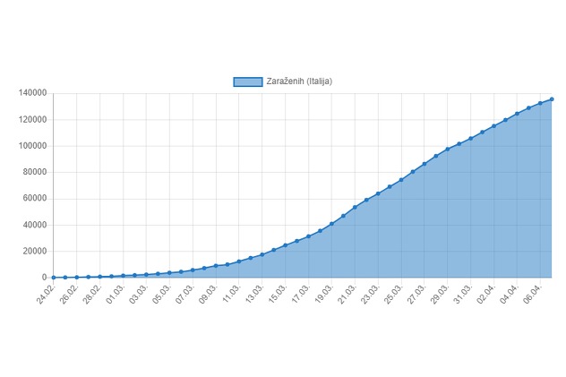 Italija je ukupno do sada registrovala 135.586 osoba zaraženih koronavirusom.