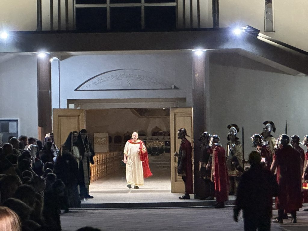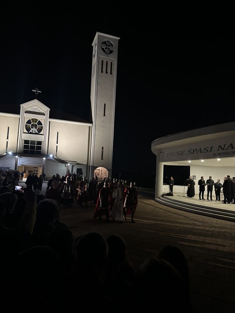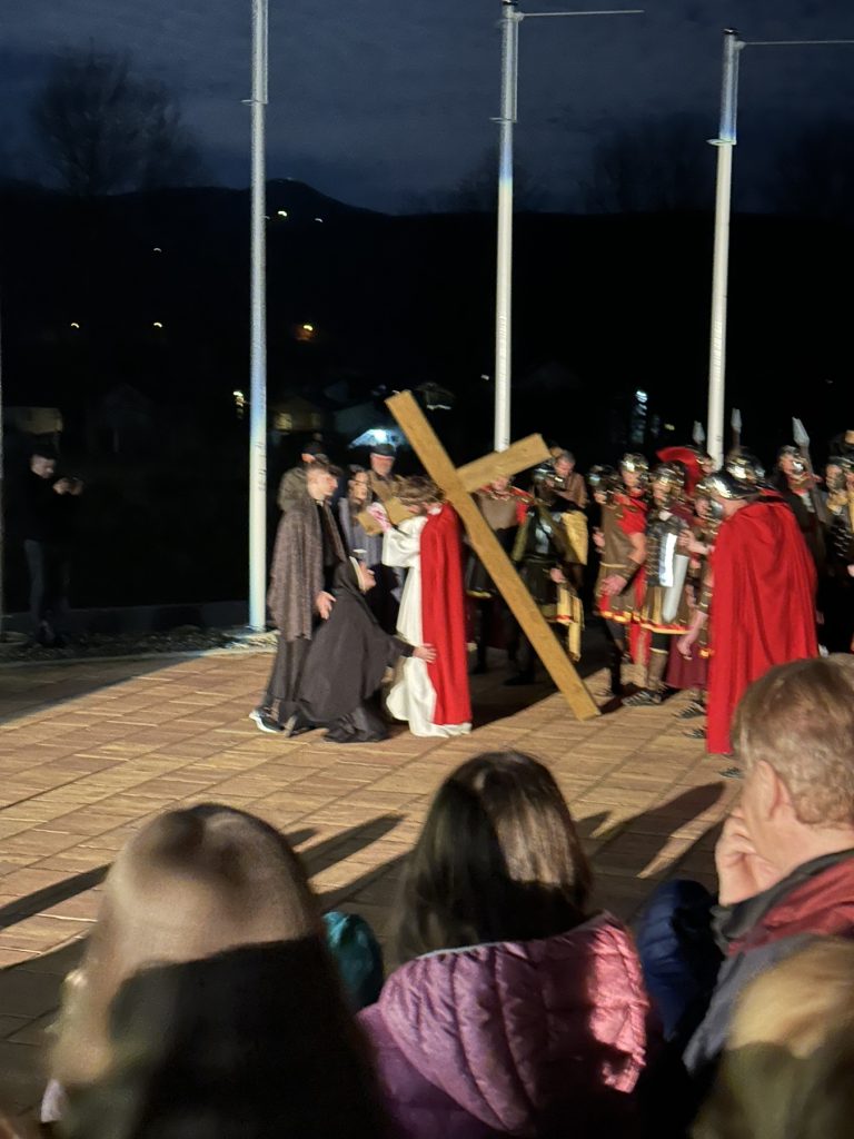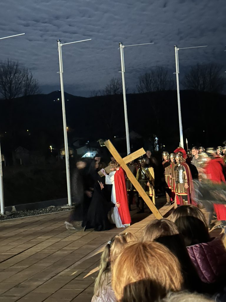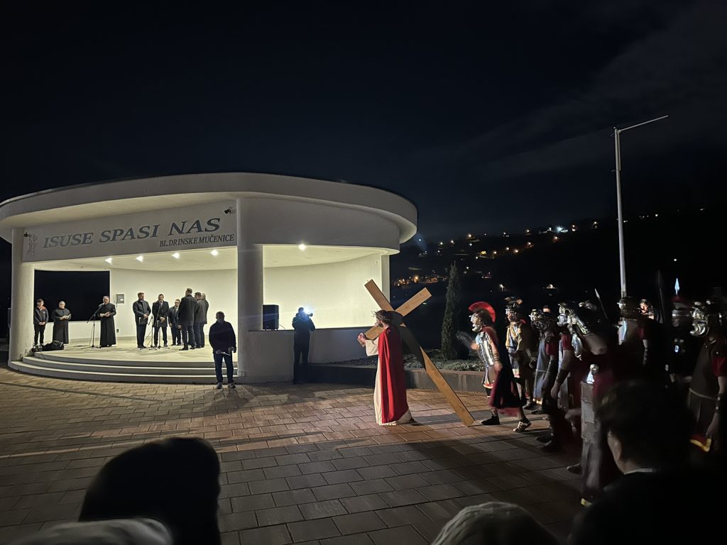 Mladi župe Presvetog Trojstva u Novom Travniku i glumci HAK Travnik priredili su večeras “živi” put križa na trgu Drinskih mučenica, ispred župne crkve.