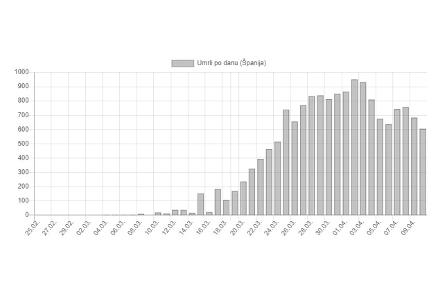 U Španjolskoj je u posljednja 24 sata preminulo 605 osoba, a oporavilo se 3.503