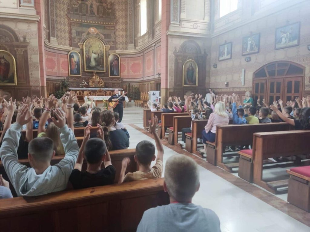 Za učenike razredne nastave i njihove učitelje te djecu i djelatnike vrtića o. Ante Gabrić upriličen je prigodni blagoslov kojeg je predvodio vlč. Jakov Kajinić. Uz pjesmu i molitvu blagoslova, don Jakov je zaželio malenima uspješnu novu nastavnu i pedagošku godinu uz obilje Božjeg blagoslova.