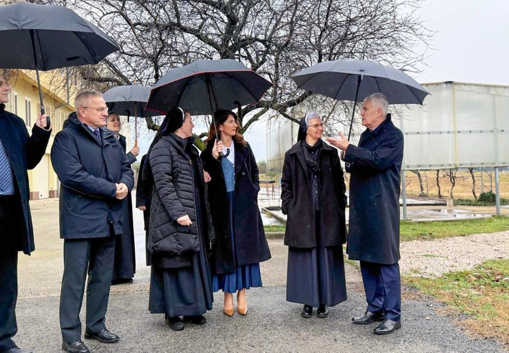 U okviru razgovora o nastavku suradnje, dužnosnici su posjetili Školske sestre franjevke Krista Kralja u Bijelom Polju, gdje su se dalje upoznali s njihovim dugogodišnjim djelovanjem i projektima usmjerenima na jačanje dobrobiti lokalne zajednice. Tom su prilikom obišli obnovljeni sestrinski samostan u kojem je smještena prva kušaonica maslinovog ulja u BiH Paxa House, galeriju slika akademske slikarice sestre Rozarije Radić te zbirku samostanske baštine. Posebno su istaknuti projekti maslinarstva, rad dječjeg vrtića te djelovanje kuće za duhovne obnove posvećene biskupu fra Paškalu Buconjiću. Razgovaralo se i o daljnjem razvoju sadržaja koji povezuju duhovnu dimenziju s odgojno-obrazovnim, socijalnim i humanitarnim aktivnostima.
